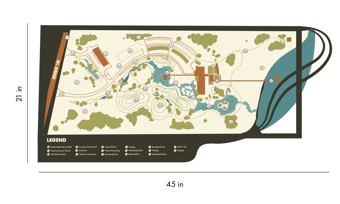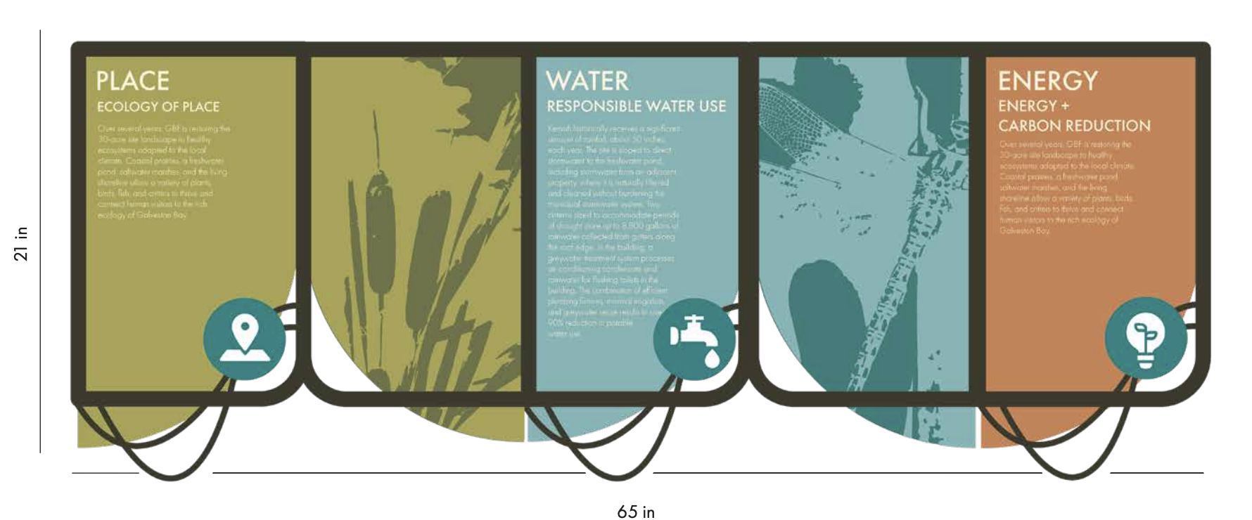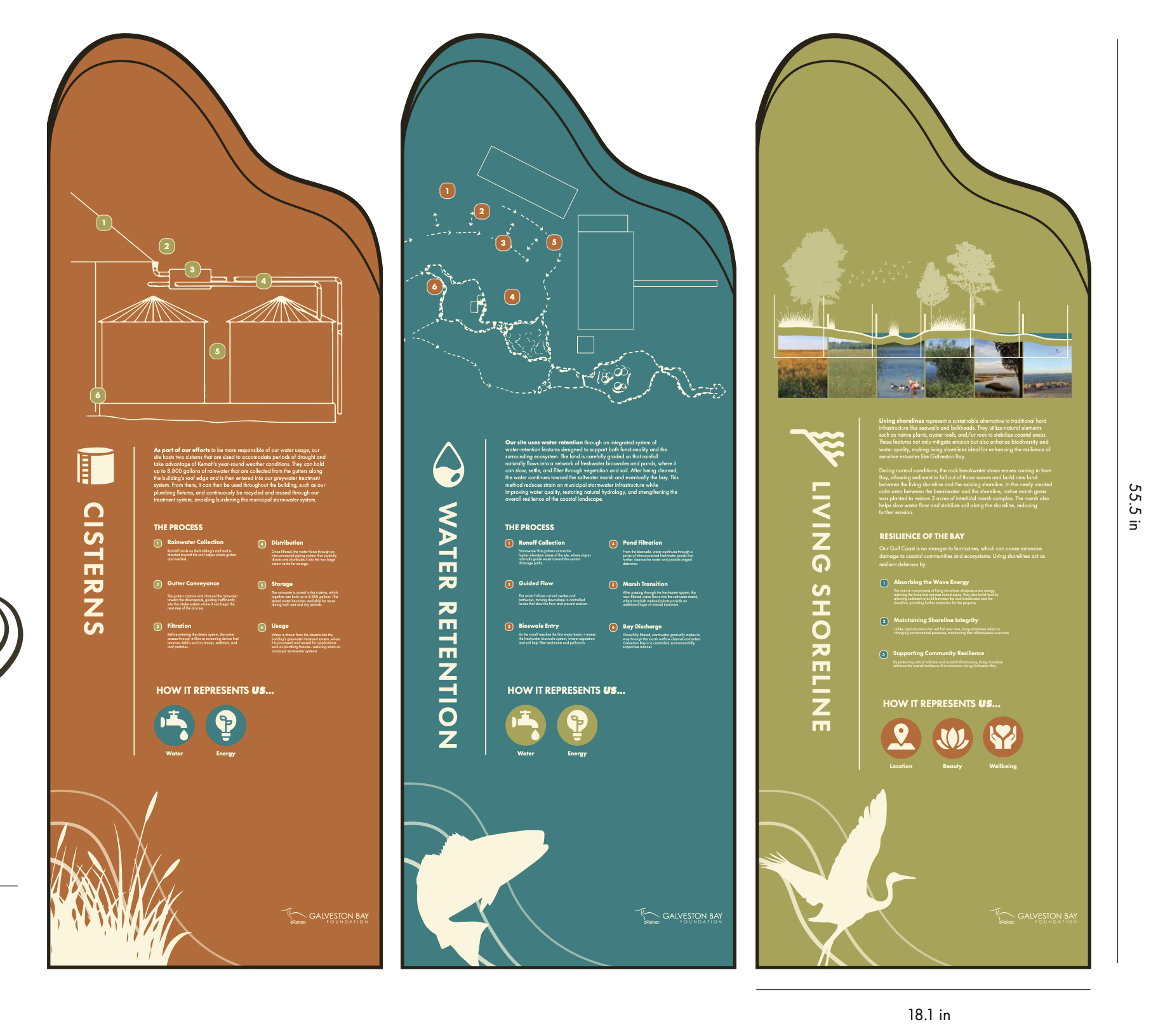 A comprehensive signage system designed for the Galveston Bay Foundation that enhances visitor navigation while educating the public about the bay’s ecosystem and conservation efforts. The design integrates clear wayfinding with engaging environmental graphics, using materials and visuals that reflect the natural surroundings. Each element is thoughtfully developed to create a cohesive experience that supports both functionality and environmental awareness.